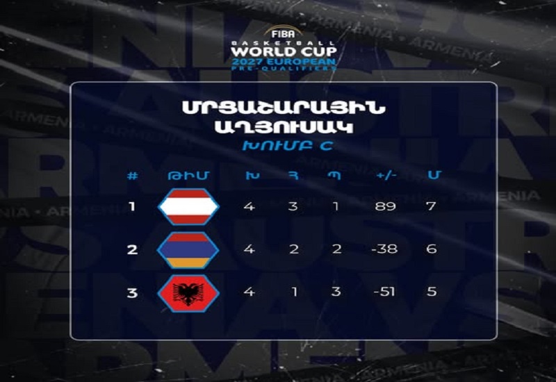 Ավարտվեցին աշխարհի 2027թ. տղամարդկանց բասկետբոլի առաջնության նախընտրական առաջին փուլի C խմբի հանդիպումները: