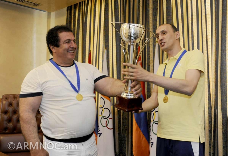 Ողջունելով մարզիկներին և ներկաներին՝ ՀԱՕԿ նախագահը մասնավորապես ասաց. «Ի սրտե շնորհավորում եմ Ձեզ հաջող ելույթների կապակցությամբ և ուզում եմ իմ խորհին շնորհակալությունը հայտնել: Ձեզ հաջողվեց մեր երկրի, պետության պատիվը բարձր պահել, ինչպես դա արեց տղամարդկանց հավաքականը:Հայաստանն օրեր շարունակ խոսում էր այս հաղթանակի մասին, իսկ անձամբ իմ ուրախությանը չափ չկար:Իհարկե այս գործում իր ավանդն ունի նաև ֆեդերացիայի նախագահը՝ Հրաչյա Ռոստոսմյանը, ով նվիրված աշխատում է և, ինչպես տեսնում եք աշխատանքը տալիս է իր ցանկալի արդյունը: Յուրաքանչյուր հարցում ձեր կողքին կանգնած եմ և թող հաջողությունն ու հաղթանակը միշտ ուղեկից լինի ձեզ, Աստված ձեզ պահապան»: