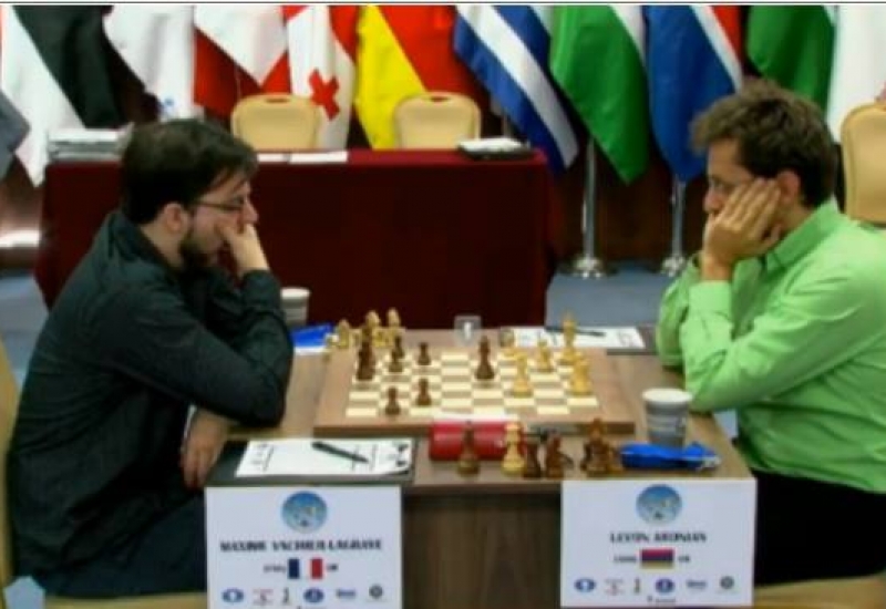 Թբիլիսիում ընթացող շախմատի աշխարհի գավաթի խաղարկությունում գրոսմայստեր Լեւոն Արոնյանը կիսաեզրափակչի առաջին պարտիան ֆրանսիացի Մաքսիմ Վաշյե-Լագրավի հետ ավարտեց ոչ-ոքի: