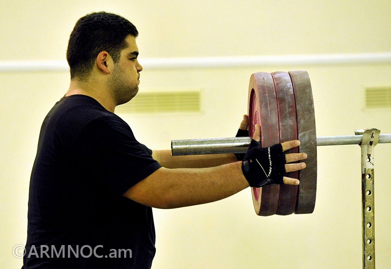 Ծանրամարտի Հայաստանի տղամարդկանց հավաքականի անդամ, գերծանր Գոռ Մինասյանը գոհ է պոկում վարժությունում բարձրացրած կիլոգրամներից: