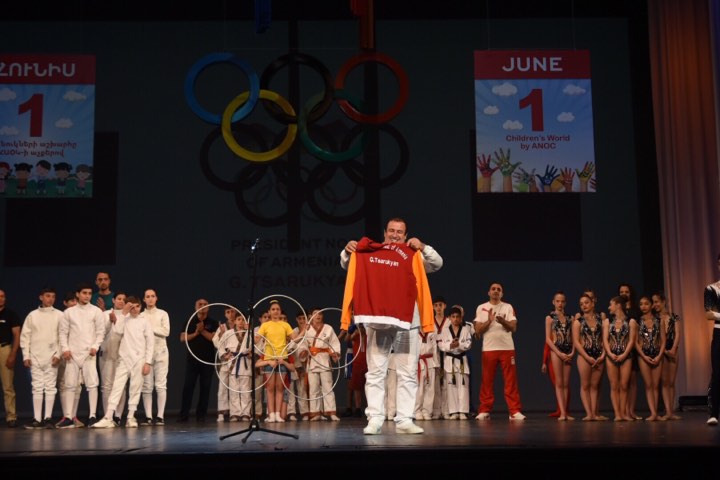«Ողջունում եմ ձեզ, հարգելի հյուրեր: Ցանկանում եմ շնորհակալություն հայտնել այս օրը Հայաստանի ազգային օլիմպիական կոմիտեի հետ անցկացնելու համար: Շնորհավորում եմ բոլոր մանուկներին՝ մաղթելով կանաչ ճանապարհ եւ պայծառ ապագա: Այս միջոցառումը տեղի չէր ունենա, եթե չլիներ մի մարդ, ով սատարում է մեզ անմնացորդ նվիրումով եւ ցանկանում է միշտ ժպիտներ պարգեւել: Նա Հայաստանի ազգային օլիմպիական կոմիտեի նախագահ Գագիկ Ծառուկյանն է: Հնարավոր չէ բառերով նկարագրել Ձեր կատարած աշխատանքը: Շնորհակալություն, որ վստահեցինք ինձ այս միջոցառման կազմակերպումը: Ձեր վստահությունն անվերապահորեն գնահատելի է: Այս միջոցառման կմախքը ստեղծվել է Ձեր խորհուրդների շնորհիվ: Երբ դուք կառուցում էիք եկեղեցիներ, մեր մեջ սերմանում էինք հավատ առ Հայ առաքելական եկեղեցին, երբ դուք բարեգործություն էիք անում տարեցներին, մենք սովորում էինք հարգանք առ նրանց, երբ դուք երիտասարդների կողքին եք, դա մեզ պարտավորեցնում է չշեղվել մարդ կոչվելու ճանապարհից, երբ դուք մանուկների կողքին եք, դա մեզ ցույց է տալիս լինել համբերատար՝ ուսուցանելով նրանց: