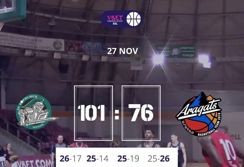 Բասկետբոլի Եվրասիական լիգայի կանոնավոր առաջնության հերթական տուրում Հայաստանի չեմպիոն «Արագածը» 76:101 հաշվով պարտվել է բելառուսական «Բորիսֆենին»: Հանդիպման ամենաարդյունավետ բասկետբոլիստ է ճանաչվել Դևին Ջոնսոնը, որը «Բորիսֆենի» կազմում վաստակել է 27 միավոր։