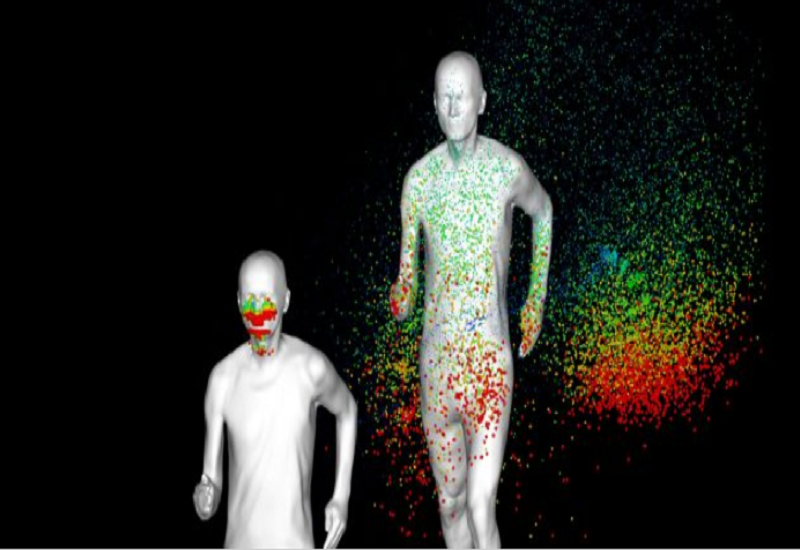Պատկերում տեսնում ենք վազորդներ, որոնք շարժվում են 10 կմ միջին արագությամբ: Նրանց շուրջ տարբեր մասնիկներից բաղկացած << ամպ >> է ձևավորվում։ Դրանք տարբերվում են իրենց քաշով: Այսպես , կարմիրները ամենածանրն են , դրանք ավելի արագ են կարգավորվում, քան դեղին, կանաչ և կապույտ մասնիկները: Հենց այս << թեթևներն >> են ներկայացնում ամենամեծ վտանգը, քանի որ նրանք վազորդի << հետևից >> օդում երկար ժամանակ են մնում: