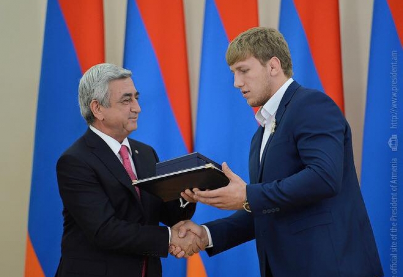 Նախագահի կողմից պարգևատրվեցին նաև հունհռոմեական ոճի ըմբշամարտի աշխարհի կրկնակի չեմպիոն, Եվրոպայի եռակի չեմպիոն և Օլիմպիական խաղերի բրոնզե մեդալակիր Արթուր Ալեքսանյանը և հունահռոմեական ոճի ըմբշամարտի Հայաստանի հավաքականի անդամ Բաքվի Եվրոպական խաղերկ արծաթե մեդալակիր Միհրան Հարությունյանը:
