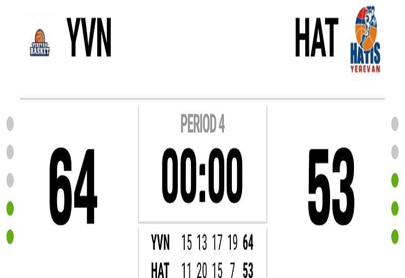 Հայաստանի կանանց բասկետբոլի բարձրագույն խմբի առաջնությունում << Երևան Բասկետը >> 64 : 53 հաշվով հաղթեց << Հատիսին>>: