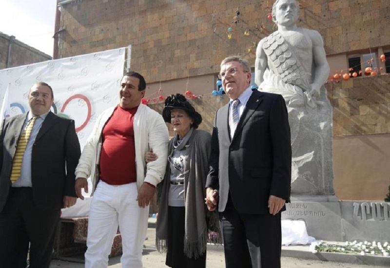 Թոմաս Բախը, Գագիկ Ծառուկյանը և Հրանտ Շահինյանի այրի տիկին Էմմա Շահինյանը Երևանում կատարեցին օլիմպիական խաղերի հայաստանցի առաջին չեմպիոնի հուշարձանի բացումը, որը ստեղծվել է ՀԱՕԿ –ի նախագահի նախաձեռնությամբ: