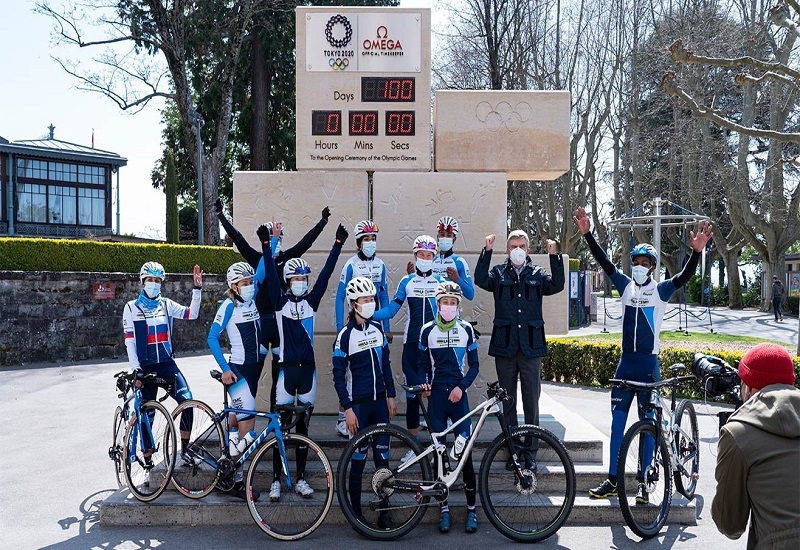 Մի խումբ շվեցարացի հեծանվորդներ, Տոկիոյի օլիմպիական խաղերի 100 օրվա հետհաշվարկի առիթով, Լոզանում, հանդիպել են միջազգային օլիմպիական կոմիտեի / ՄՕԿ / նախագահ Թոմաս Բախին։