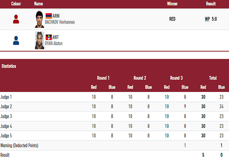 Երեկ Տոկիոյի համաշխարհային գլխավոր մարզահանդեսի մեկնարկում երևանցի մարմնամարզիկ Արթուր Դավթյանի շռնդալից ելույթից հետո, հայ մարզասերին հաջորդ ուրախությունը պարգևեց բռնցքամարտիկ Հովհաննես Բաչկովը / 63 կգ /: Նրա առաջին մրցակիցը Ռյան Ալստոնն էր՝ Անտիգուա և Բարբուդա երկրից: