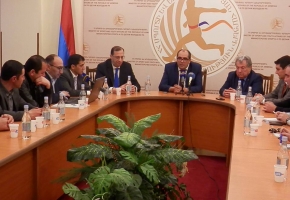 Հայաստանի եռագույնով մարզադաշտ մտան հրաձգուհի Էլմիրա Կարապետյանը և բռնցքամարտիկ Հովհաննես Բաչկովը: