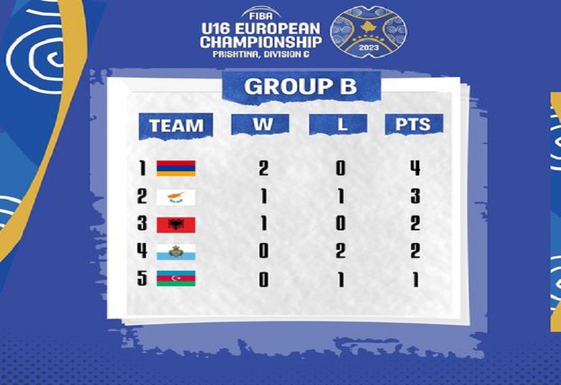 Եվրոպայի մինչև 16 տարեկան տղաների բասկետբոլի առաջնության C դիվիզիոնի երկրորդ մրցամարտն անցկացրեց մեր հավաքականը: Այս անգամ հայաստանցիները հաղթեցին Կիպրոսի թիմին / 76:63 /: Մերոնք չորս միավորով միանձնյա գլխավորում են մրցաշարային աղյուսակը: