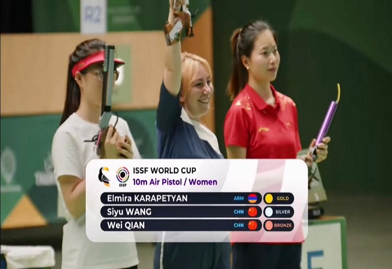Հայաստանի առաջատար հրաձգուհի Էլմիրա Կարապետյանը իրեն վայել սառնասրտությամբ, 10մ հեռավորությունից կատարեց դիպուկ կրակոցներ, վաստակեց 579 միավոր և երրորդ տեղով մտավ եզրափակիչ: Վճռական պայքարում նա զարգացրեց հաջողությունը, հավաքեց 236.6 միավոր, անհասանելի դարձավ իրեն հետապնդող երկու չինուհիների համար, գրավեց առաջին տեղը և հաղթող ճանաչվեց: