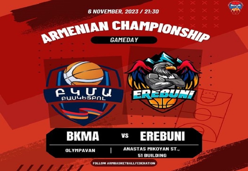 Մայրաքաղաքի Օլիմպավանում այսօր, ժամը 21.30 –ին, կսկսվի ԲԿՄԱ- «Էրեբունի» հանդիպումը: