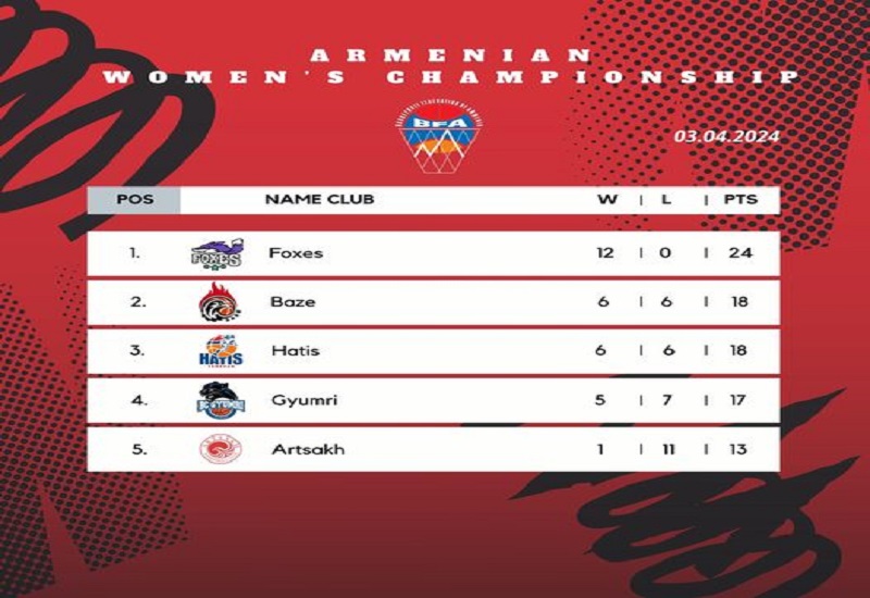 Ավարտվեց Հայաստանի կանանց բասկետբոլի կանոնավոր առաջնությունը: Իր բոլոր հանդիպումները հաղթանակով ավարտեց և առաջին տեղը գրավեց «Ֆոքսիսը»: Նրան առաջին քառյակում հաջորդեցին «Բազե», «Հատիս» և «Գյումրի» թիմերը: Հենց նշած ակումբների միջև, կիսաեզրափակիչ փուլի նկարագրով, մեկական հանդիպումներով, պայքար կծավալվի առաջնության չեմպիոնին, փոխչեմպիոնին և բրոնզե մեդալակրին որոշելու համար: