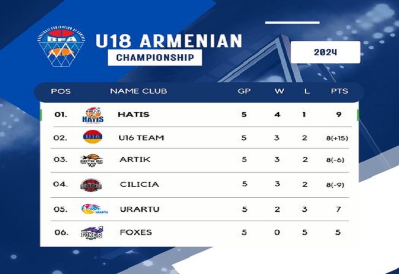 Մինչև 18 տարեկան տղաների ստուգատեսի առաջին շրջանի ավարտից հետո մրցաշարային աղյուսակը հետևյալ տեսքն ունի.