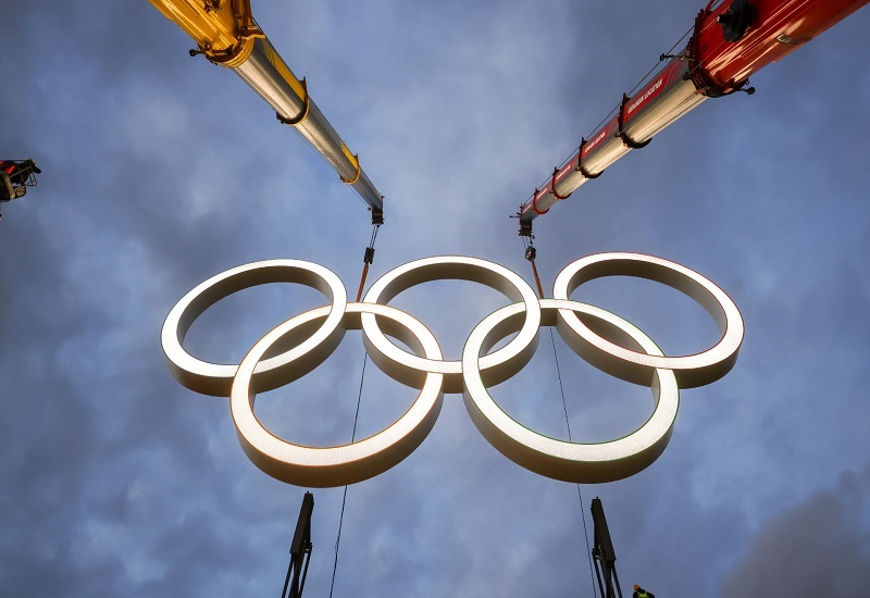 Ֆրանսիայի խորհրդանիշ Էյֆելյան աշտարակի վրա, խաղերի մեկնարկից 50 օր առաջ, հունիսի 6-ի` լույս 7-ի գիշերը, տեղադրվել են օլիմպիական օղակները: