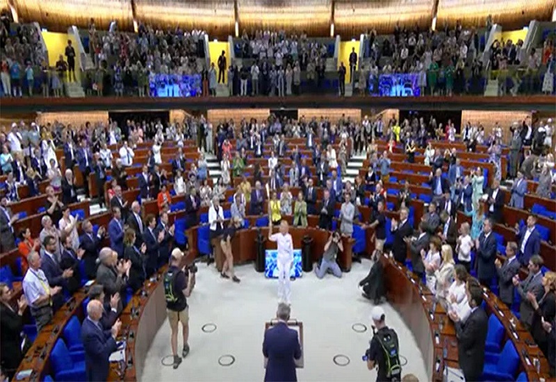 «Բարի գալուստ խաղաղության օլիմպիական կրակ ՝ մարդու իրավունքների օրրան»,-հայտարարել է ԵԽԽՎ նախագահ Թեոդորոս Ռուսոպուլոսը: Նա նաև ասել է, որ ներկաները ականատես են լինում պատմական իրադարձության և լավագույն մաղթանքներ է հղել միջազգային օլիմպիական կոմիտեին ու Ֆրանսիային՝ 33-րդ ամառային խաղերի կազմակերպման համար։