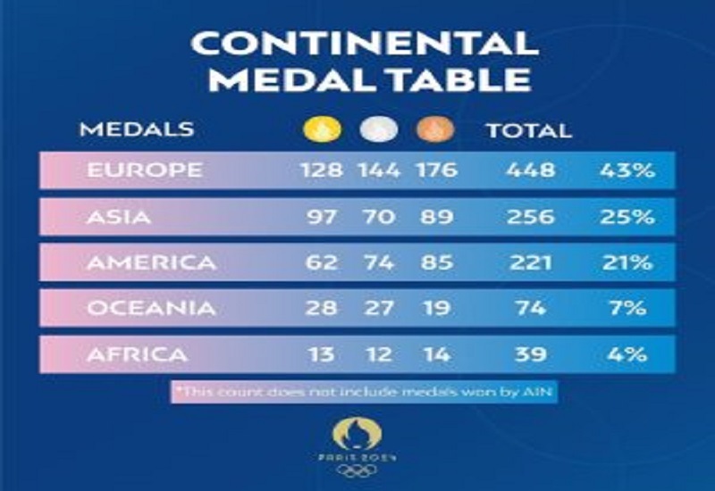 Ընդհանուր առմամբ, օլիմպիական մեդալների ավելի քան 43%-ը նվաճել են եվրոպացի մարզիկները. 128 ոսկե, 144 արծաթե և 176 բրոնզե: Սա ավելի շատ է, քան ցանկացած այլ աշխարհամասի ներկայացուցիչների ձեռքբերումները:
