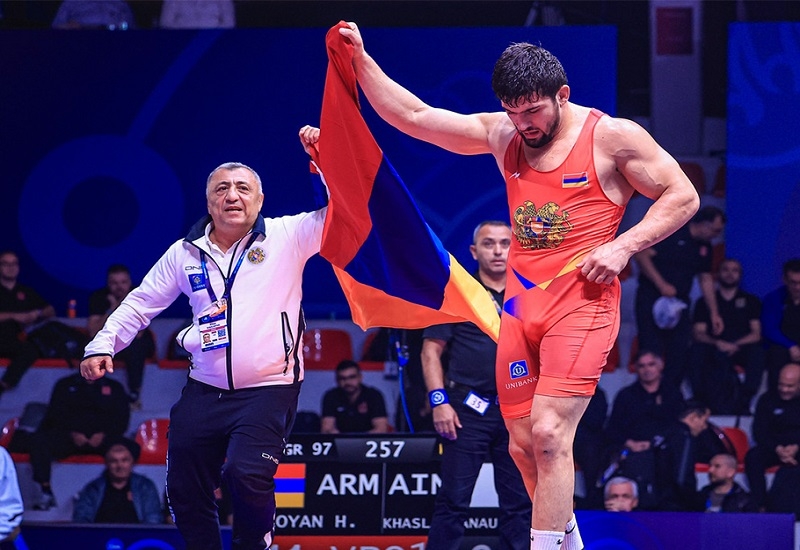 Հայաստանի պատվիրակներից գերազանց մրցելույթներ ունեցավ Հայկ Խլոյանը / 97 կգ /, որը նվաճեց չեմպիոնի կոչումը: Այդ առթիվ շնորհավորեցինք նրա անձնական մարզիչ, ֆիզիկական կուլտուրայի հայկական պետական իստիտուտի դասախոս, դոցենտ, վաստակավոր մարզիչ Կամո Կիրակոսյանին: Նա մեզ հետ զրույցում ասաց, որ Հայկը շնորհալի, ինչպես ասում են ՝ << չափված – ձևված >> երիտասարդ է: Ծնվել է Վարդենիսում և վաղ հասակից ընտանիքով տեղափոխվել է մայրաքաղաք: Սովորում է ֆիզկուլտուրային մայր բուհում: Նա աստիճանաբար հարստացնում է իր մրցափորձը: Երբեմն գոտեմարտել է անվանիների հետ: Օրինակ, հենց այս մրցումների կիսաեզրափակիչում ՌԴ –ի հանրահայտ ըմբիշ Մուրթազալիևին հաղթեց չափազանց դժվարին պայքարում: Հայկը եզրափակիչում ծնկի բերեց Փարիզի օլիմպիական խաղերի մասնակից, բելառուսցի Աբուբաքար Խասլախանաուին՝ 11:6: