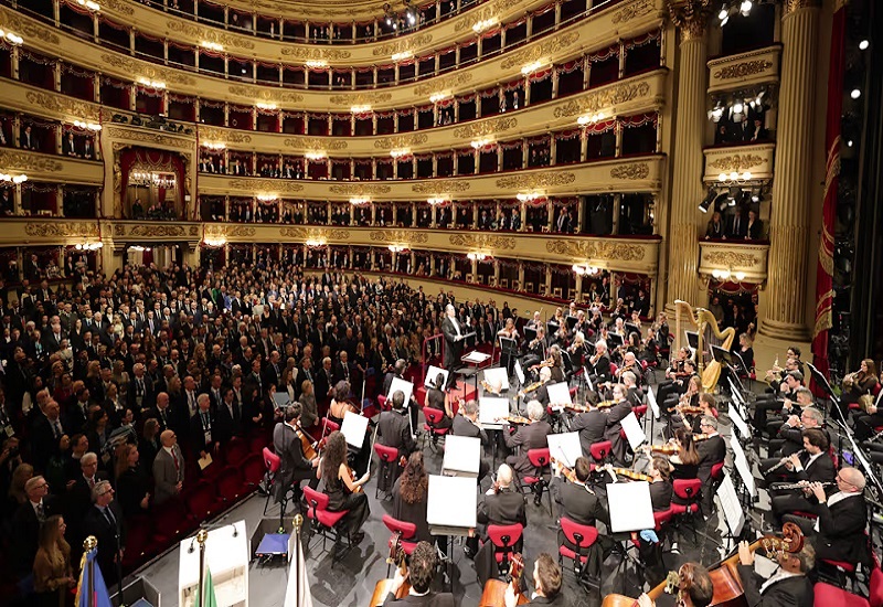 Միլանը նստաշրջանի բացման համար շքեղ ընդունելություն է կազմակերպել։ Երեկոն նվիրված է եղել երկրի մշակույթին, իսկ Լա Սկալայի հայտնի ղեկավար Ռիկարդո Շայլին ներկայացրել է երաժշտական ծրագիր՝ նվիրված իտալական օպերայի երկու հսկաներին՝ Ջոակինո Ռոսսինիին և Ջուզեպպե Վերդիին։