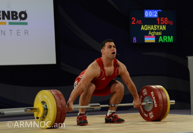 In the first approach of the snatch Aghasi Aghasyan lifted 153kg but failed to hold overhead the 158kg barbell in the remained two approaches.