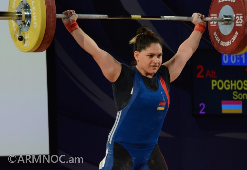 Armenian women’s weightlifting team member Sona Poghosyan placed 4th at the European Championships scoring 227kg in the double-event.