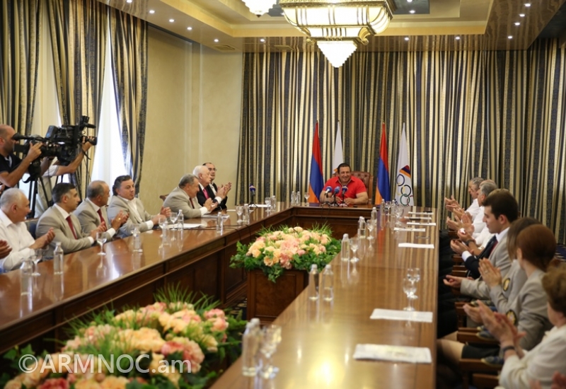 Во время встречи тренеры сборной поблагодарили президента НОК Армении за поддержку армянского спорта. Руководитель спортивной делегации Армении Дереник Габриелян представил проделанную до сих пор работу и рассказал о предстоящих событиях в Рио.