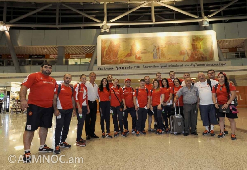 25-го июля в полночь первая группа армянской олимпийской делегации (пловцы, тяжелоатлеты и легкоатлеты), отправилась на Олимпийские игры рейсом Ереван-Доха-Рио. Команду тяжелоатлетов возглавлял главный тренер сборной Пашик Алавердян, а легкоатлеты примут участие в Играх под руководством президента федерации легкой атлетики Роберта Эммияна. Тяжелоатлет Аракел Мирзоян присоединится к команде позже.