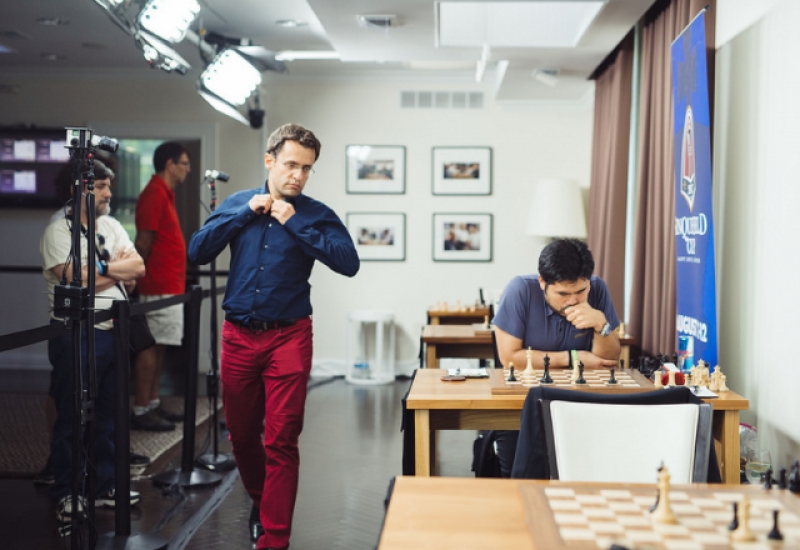 Левон Аронян черными победил Хикару Накамуру. Армянский гроссмейстер теперь набрал 4.5 очка возглавляет турнирную таблицу.