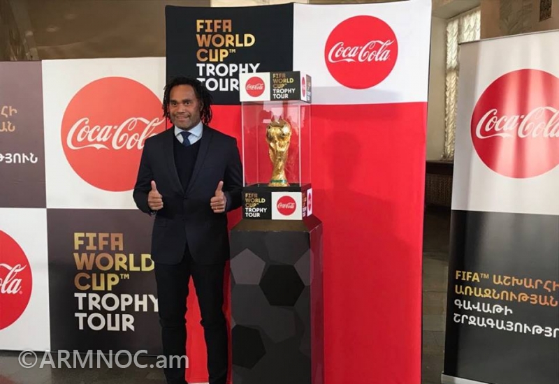 До старта чемпионата мира по футболу 2018 года золотой кубок демонстрируется в различных странах мира. В Армении кубок "Мундиалей" представляет чемпион мира Кристиан Карамбе.