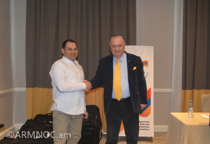 Советник президента Национального олимпийского комитета Армении Рубен Акопян от имени главы НОКА Гагика Царукяна вручил спортивную форму членам паралимпийской делегации, в том числе горнолыжнику Сасуну Акопяну.