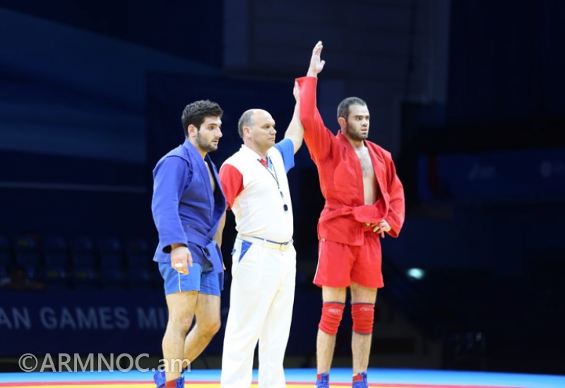 Армянский самбист получил возможность принять участие в утешительном поединке, где одержал победу над азербайджанцем Абдулой Абдулаевым со счетом 3:0 и получил возможность побороться за медаль.